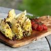 Grillad majs kycklingbröstfilé med rödvinssås chili bearnaises rostade grönsaker och rotsaks gratäng.